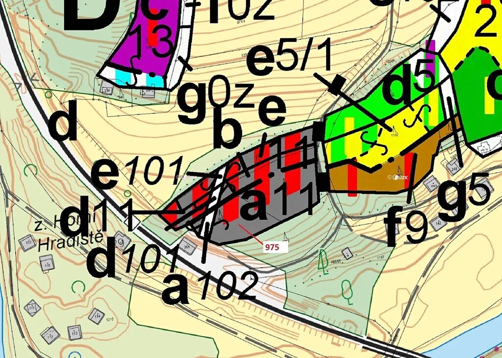 Lesní pozemek o výměře 1 287 m2, parcelní číslo 975, podíl 1/1, katastrální území Horní Hradiště, obec Plasy, obec s rozšířenou působností Kralovice, okres Plzeň-sever, Plzeňský kraj. Po těžbě.