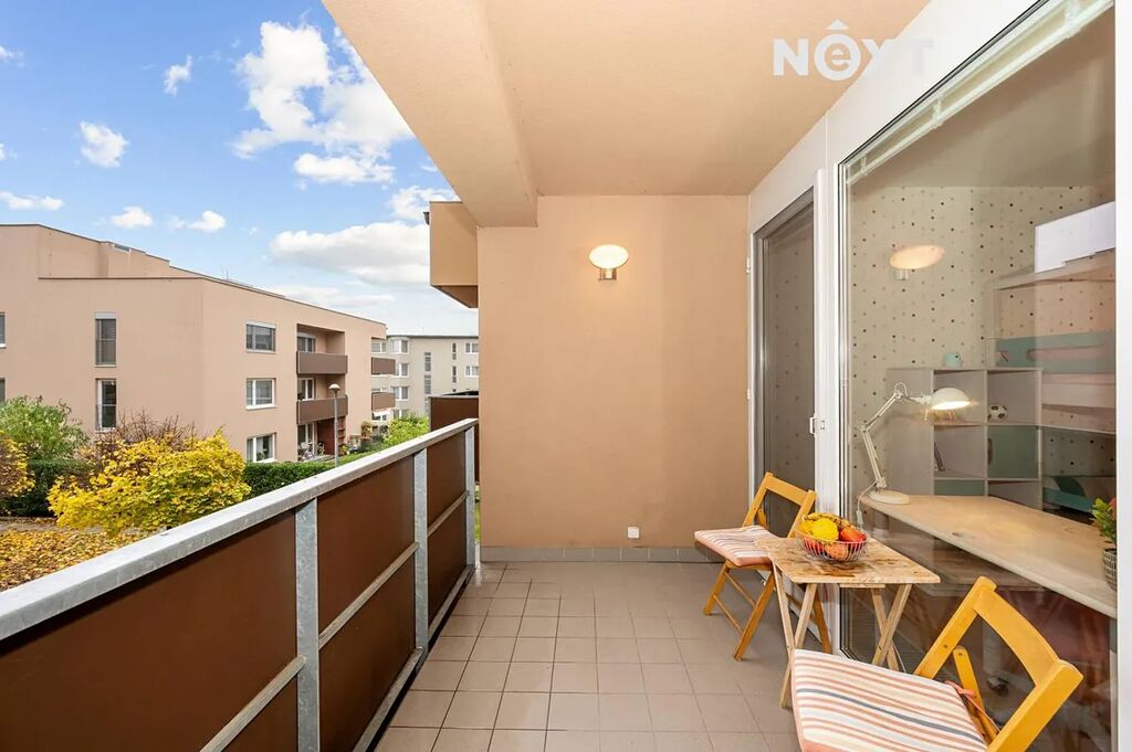 Z obývacího pokoje vstoupíte na prostornou lodžii orientovanou do klidného vnitrobloku – ideální místo na ranní kávu, čtení nebo večerní relax.