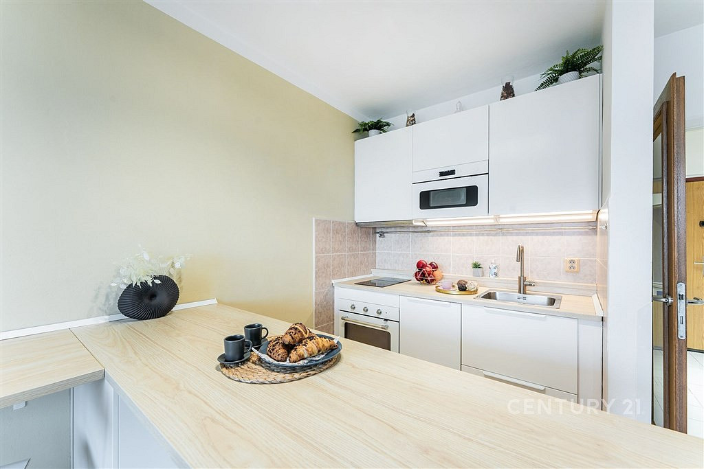 Příjemně a promyšleně zařízený byt navzdory svým komorním 27 m² dokáže nabídnout útulný domov PRO 1 OSOBU, zázemí s veškerým komfortem a navíc fantastickými výhledy do krajiny.