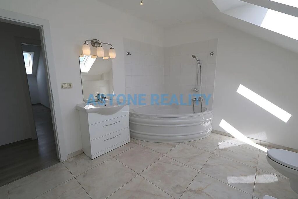Nabízíme Vám k pronájmu krásný, dvoupodlažní rodinný dům 7+kk se třemi balkony a dvougaráží v obci Trnová, pouze několik kilometrů od Prahy. Prostorný dům s obytnou plochou 370 m2 se nachází na zcela rovném, oploceném pozemku o celkové ploše 1.674 m2. Dispoziční řešení: v přízemí je vstupní hala, kuchyně s velkým obývacím pokojem, koupelna s masážním sprchovým koutem a toaletou, ložnice a technická místnost s kotlem a vstup přímo do garáže, v prvním patře se nachází čtyři samostatné ložnice se dvěma koupelnami, jedna s rohovou vanou, druhá se sprchovým koutem, pracovna, dvě úložné komory a šatna. Plovoucí podlahy v kombinaci s velkoformátovou dlažbou, eurookna, bezpečnostní vstupní dveře. Dům je zabezpečen alarmem. Výborná dopravní dostupnost, busem 30 min na metro B Smíchov, nebo vozem po dálnici 20 min. V bezprostřední vzdálenosti je cyklostezka, restaurace, jezdecké centrum. Kompletní občanská vybavenost se nachází v nedalekém Jílovišti nebo v Měchenicích. V případě zájmu o prohlídku nás prosím kontaktujte, k dispozici od 1.12.