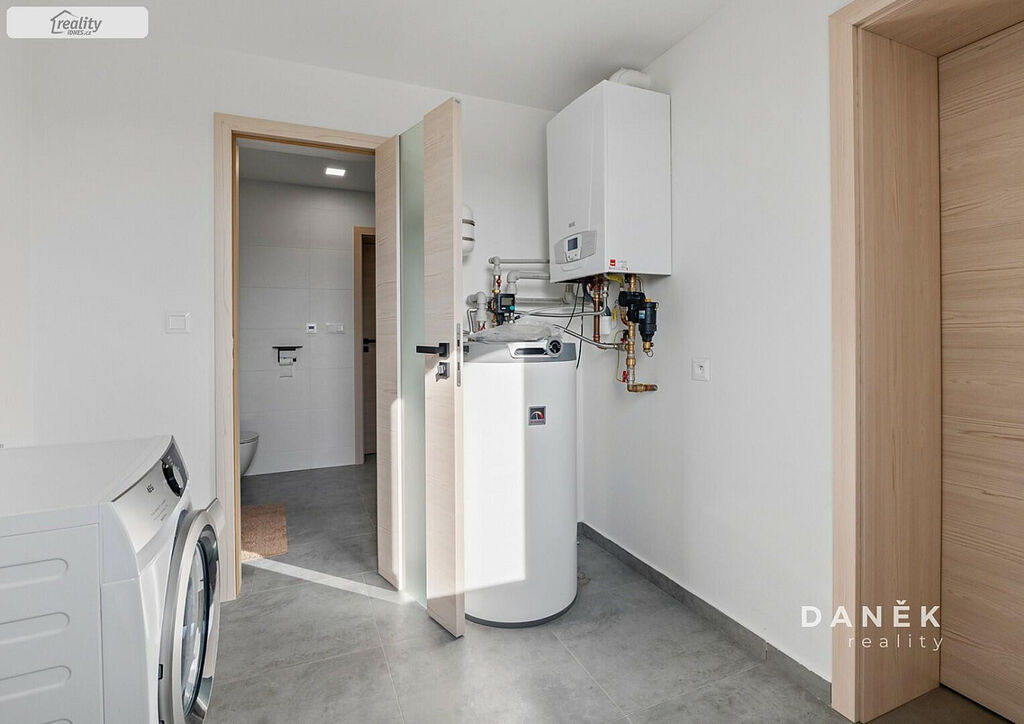 Dům je postaven z cihelného systému POROTHERM s betonovými základy a stropy, sedlovou střechou pokrytou betonovou taškou a je kompletně zateplený. Energetická třída B zaručuje nízké provozní náklady a komfortní bydlení po celý rok. Měsíční náklady: plyn cca 3 600 Kč, elektřina cca 1 800 Kč. O teplo se stará plynový kotel v kombinaci s podlahovým vytápěním, o příjemnou atmosféru pak krb v obývacím pokoji. Samozřejmostí jsou venkovní žaluzie a stmívatelná LED světla, díky kterým si můžete jednoduše nastavit ideální atmosféru. Dům je napojen na obecní vodu a kanalizaci a je situován mimo záplavové území. V domě se nachází zabezpečovací systém Jablotron. Tříděný odpad a bioodpad je zajištěn obcí. Optický internet zatím není přiveden.