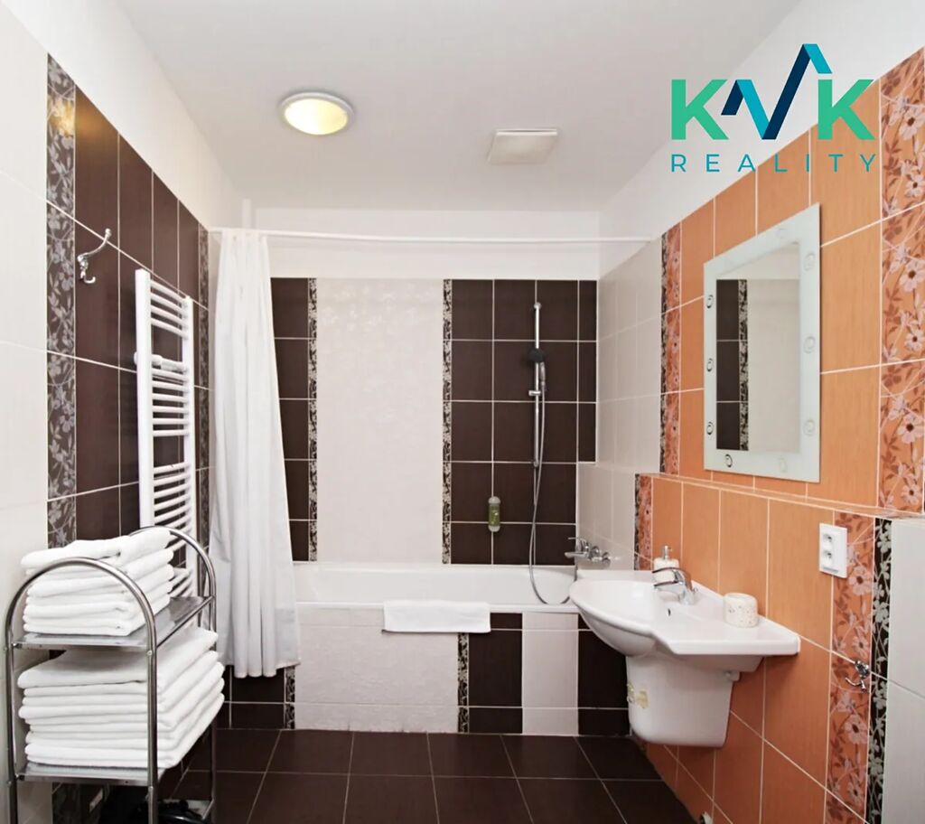 Nemovitost dále disponuje prostornou koupelnou a úklidovou místností pro uložení všech nezbytností a pračkou. Byt je vybaven kvalitním nábytkem, který podtrhuje jeho luxusní charakter.