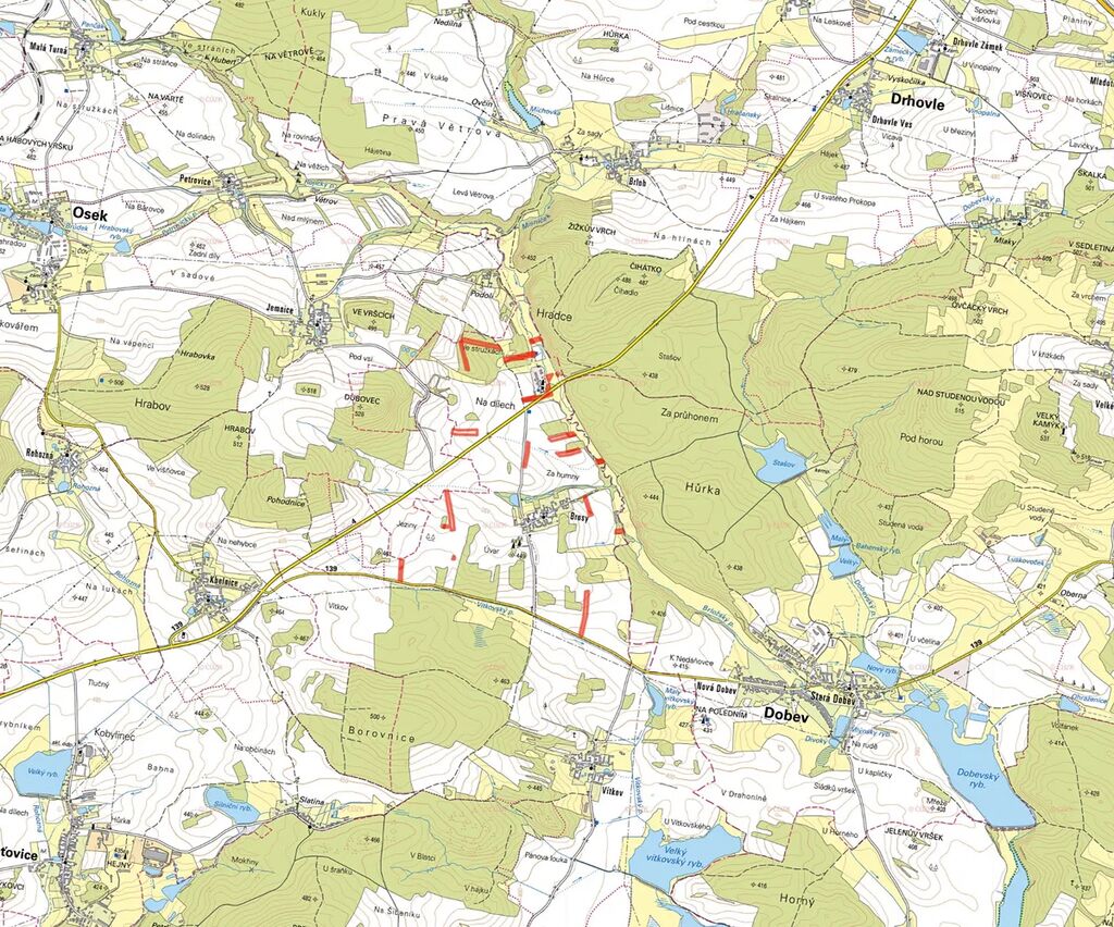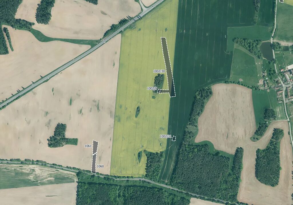 Pozemky jsou vedeny pod čísly 49, 52, 64/1, 100/9, 104/2, 107/1, 160/12, 160/29, 160/30, 168/5, 170/9, 172/2, 182/7, 192/1, 194/6, 238/1, 406/34, 406/40, 410, 485/4, 505/6, 531/2, 545/3, 558/3, 559/15, 584, 714/10, 720/6, 809/1, 1002/9, 1002/30, 1002/31, 1060, 1061, 1143/10, 1149/3, 1151/13, 1156/28, 1158/24 a 1158/25.