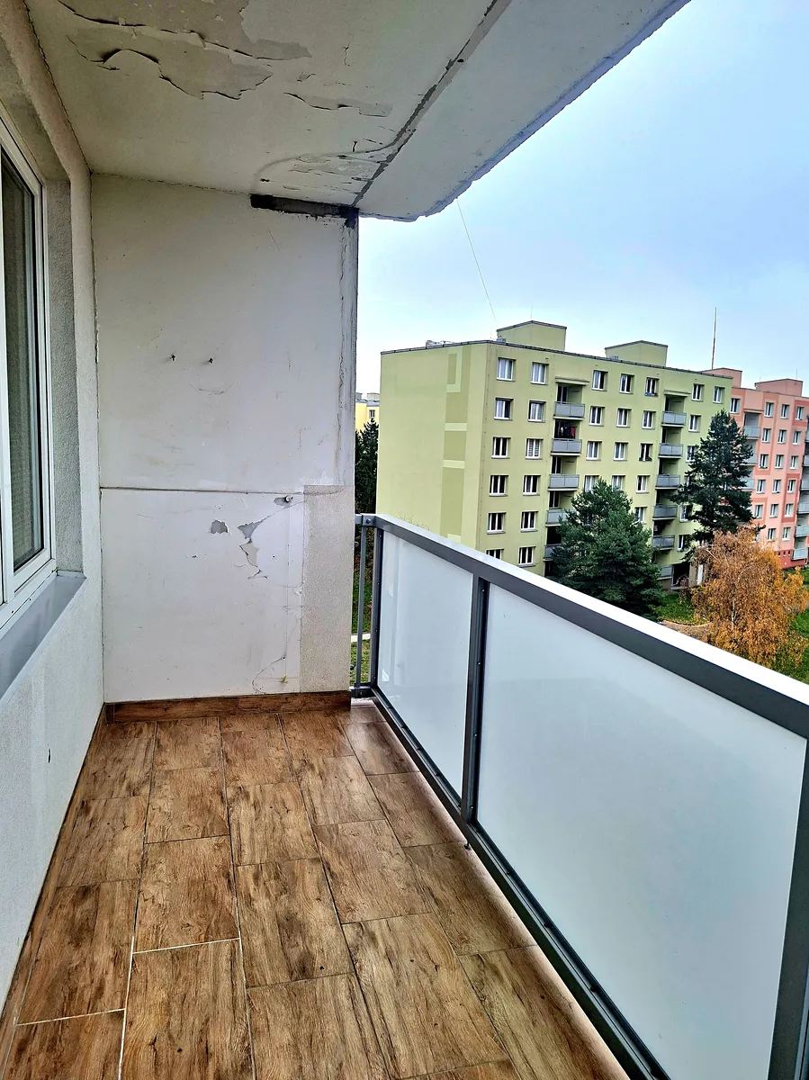 Byt se nachází v 5. patře panelového domu s výtahem, součástí je také prostorná komora s oknem v mezipatře s výměrou 2,2m2.