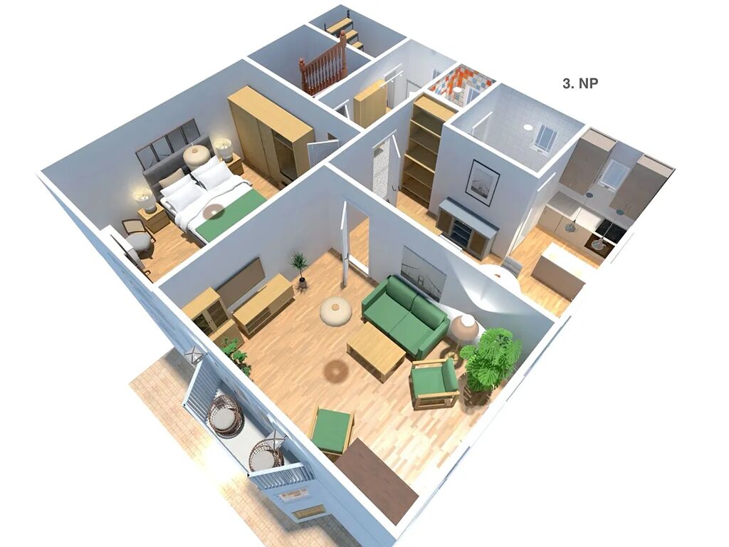 Každé podlaží působí vzdušně, světlým dojmem a nabízí příjemnou kombinaci elegance a pohodlí.