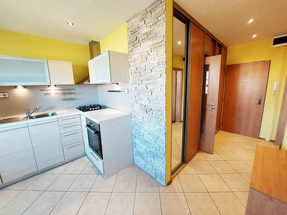 Jedná se o prostorný moderní byt po kompletní rekonstrukci velikosti 1+1 o celkové ploše 40 m² s prosklenou lodžií (s výhledem do zeleně a na Brno), umístěný v 7. patře/8 revitalizovaného panelového domu s výtahem.
