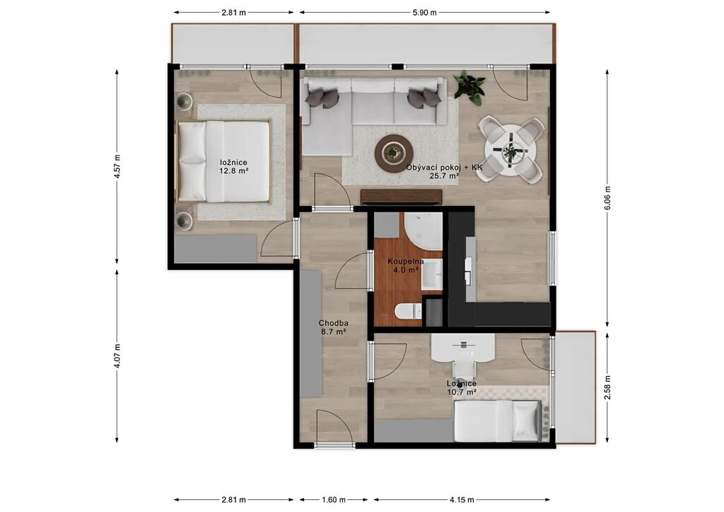 Bytová jednotka se nachází ve třetím patře udržovaného panelového domu a prošla kompletní rekonstrukcí. Veškeré rozvody vody, odpadů, radiátory byly vyměněny. Nová elektroinstalace, koupelna, podlahy, interiérové i vchodové dveře. Nová kuchyňská linka s vestavnými spotřebiči zn. Candy, nové osvětlení na dálkové ovládání. Ke každému pokoji náleží samostatná lodžie, z toho dvě s výhledem na ikonické kladenské věžáky. Podlahová plocha bytu je 61,3 m2, lodžie celkem cca 11,5 m2 a necelé 3 m2 sklep.