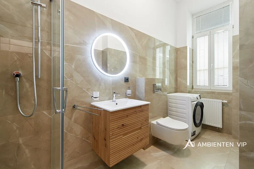 Koupelna disponuje sprchovým koutem, umyvadlem se skříňkou, zrcadlem, topným žebříkem, pračkou a toaletou. Internet je již zahrnut v ceně.