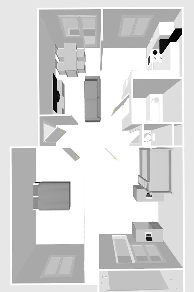 Dispozice bytu je prakticky řešena – centrálním bodem je prostorný obývací pokoj, ze kterého se pohodlně dostanete do všech dalších místností. K bytu náleží zasklená lodžie ideální pro relaxaci i balkón, který přináší dostatek denního světla.