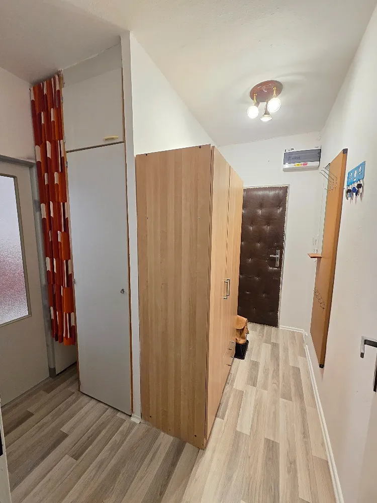 Byt je v dobrém stavu a vybavený spotřebiči a základním nábytkem.