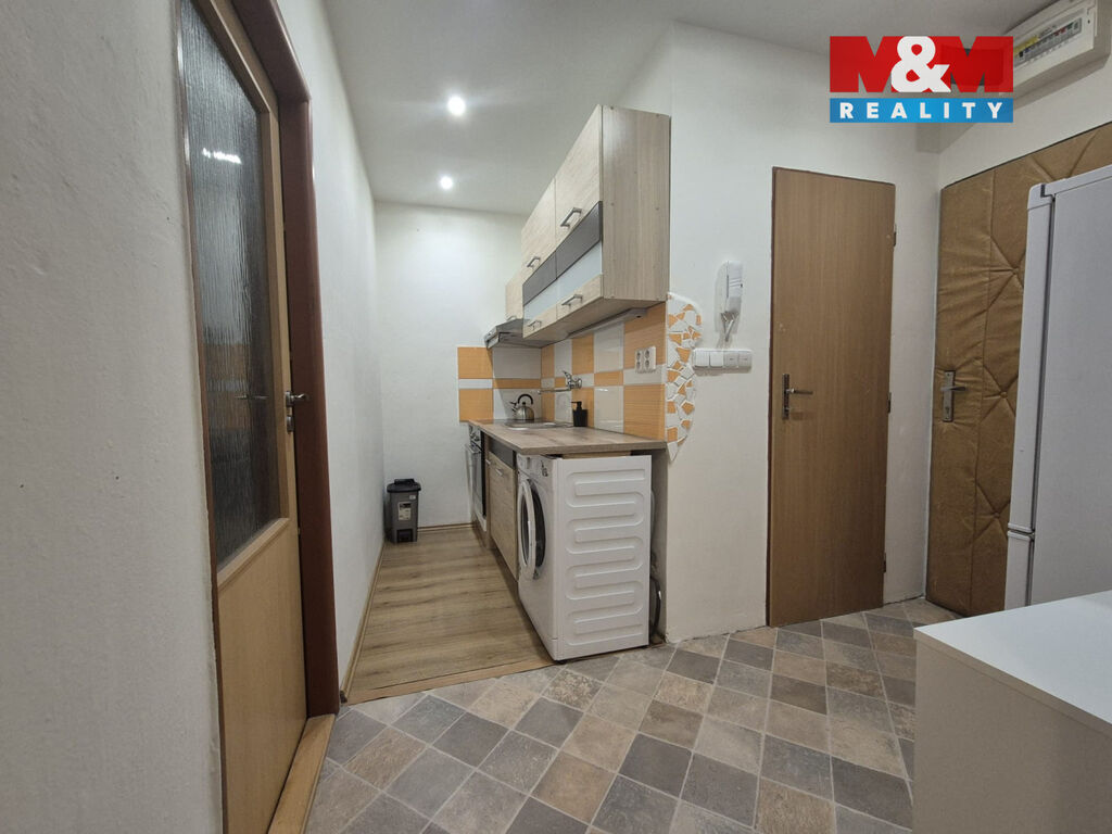 Dispozice bytu zahrnuje zařízený obývací pokoj s kuchyňským koutem, zařízenou ložnici a koupelnu. K bytu dále náleží sklep o výměře celkem 3 m². Parkování je možné přímo u domu.