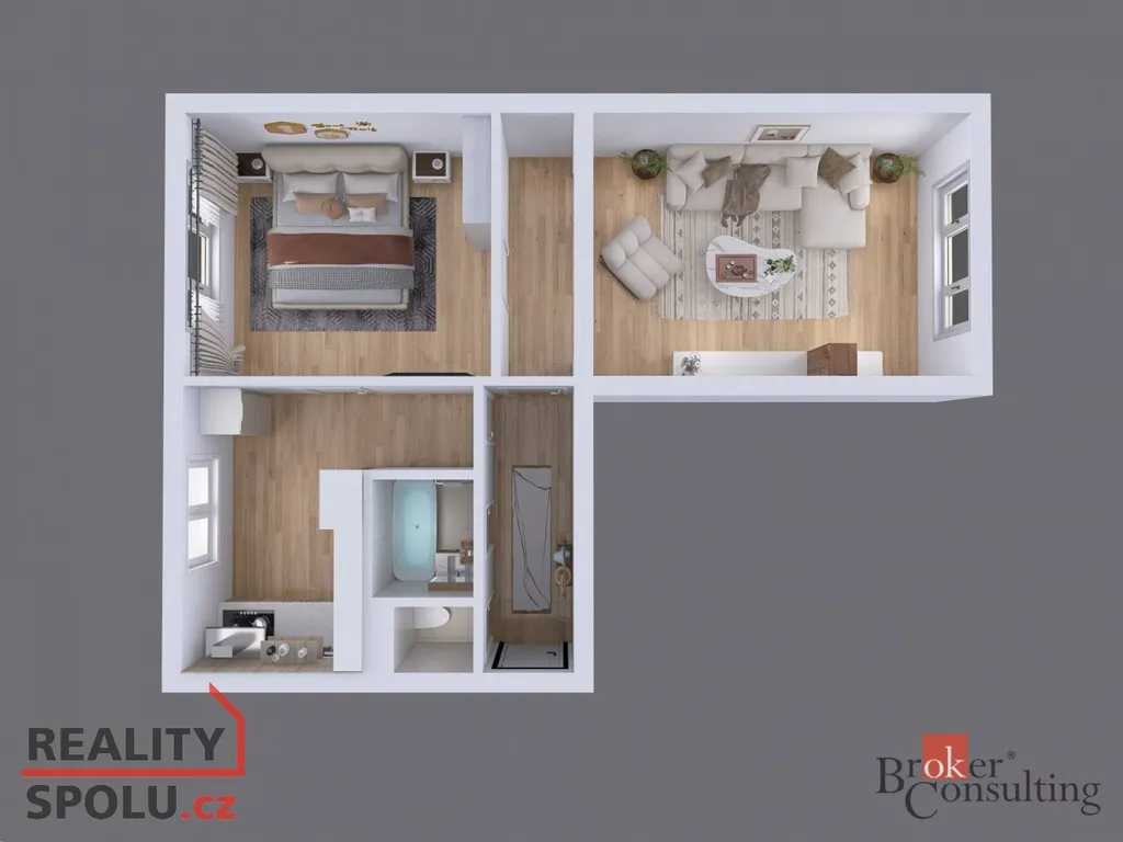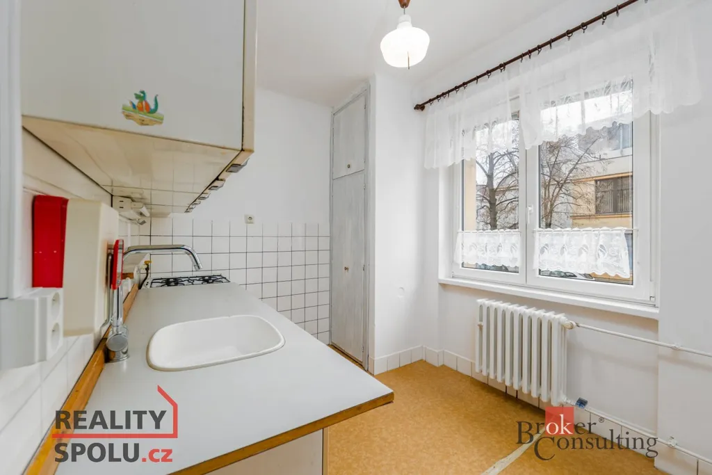 Dispozici tvoří předsíň, samostatná toaleta, koupelna, kuchyně, ložnice a prostorný obývací pokoj. Dům je po kompletní revitalizaci a díky výtahu a podestě nabízí zcela bezbariérový přístup. K bytu náleží také sklepní kóje ( 1,7 m2 ).