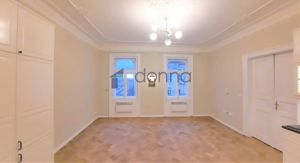 Nabízíme pronájem prostorného bytu 2+kk, o výměře 56m² s balkonem, ve 3. patře secesního domu bez výtahu z roku 1900 na ulici Na Smetance, Praha 2 – Vinohrady.