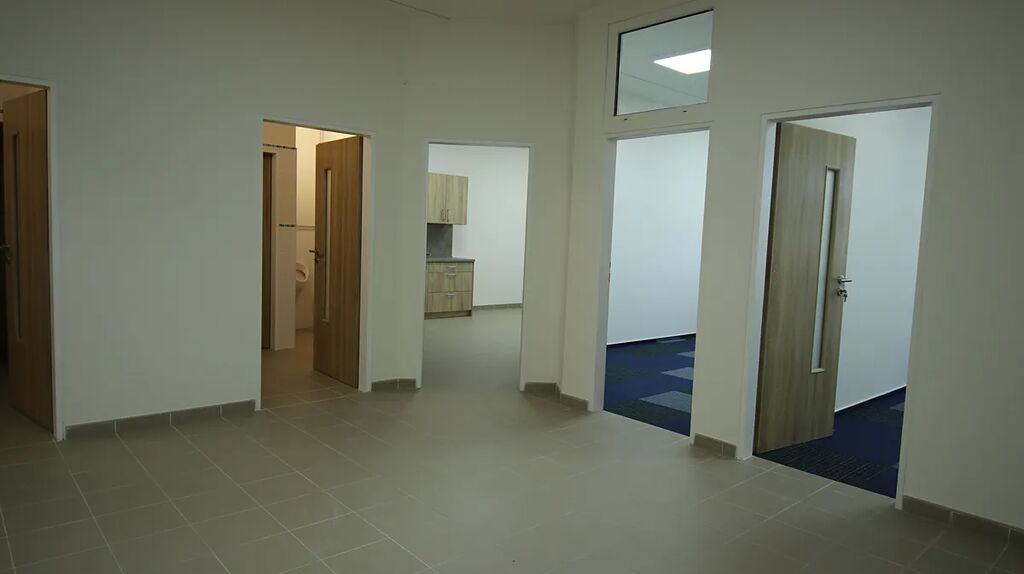 Nabízíme k pronájmu soubor kanceláří s celkovou plochou 293 m2. Prostory se nachází ve 3. nadzemním podlaží a jsou vhodné pro provozování kanceláří. Jde o nové prostory a v případě zájmu o větší celek lze rozšířit o další sekce. V celku jsou je společné sociální zázemí a kuchyně. Součástí je vlastní zabezpečovací systém. Možnost umístění reklamy v okolí domu a rovněž umístění sídla firmy na uvedené adrese. Kancelář se nachází v průmyslové zóně v Sedlištích a v areálu působí několik výrobních firem i administrativních celků. Součástí služeb je cena za teplo, vodu, elektřinu, zabezpečovací systém a kamerový dohled společných prostor a úklid příjezdové cesty. V případě zájmu je možno si také pronajmou parkování pro osobní automobily a internet, který je již zavedený na objektu.