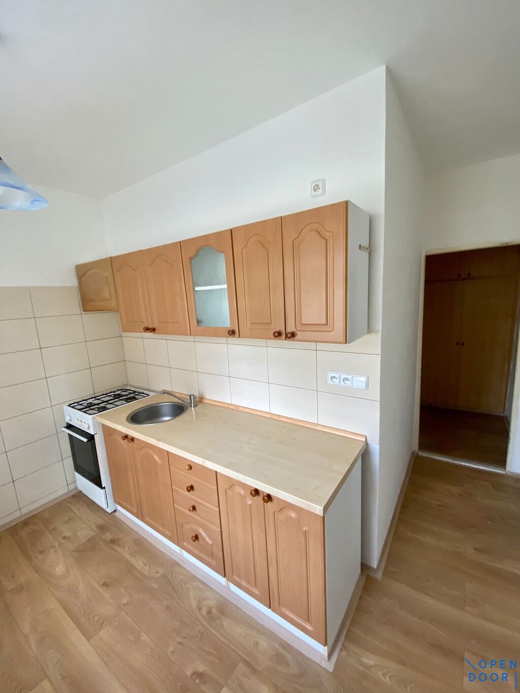 Byt nabízíme jako částečně vybavený. Skládá se z chodby, která díky velkým skříním nabízí úložný prostor, z níž jsou vstupy do všech hlavních místností bytu – obývací pokoj, kuchyň s kuchyňskou linkou vč. kombinovaného sporáku. Dále v bytě je zrekonstruovaná koupelna s umyvadlem a sprchovým koutem, WC je samostatně. Na podlahách bytu jsou parkety, koberec, v koupelně a na WC je keramická dlažba, v oknech jsou žaluzie.