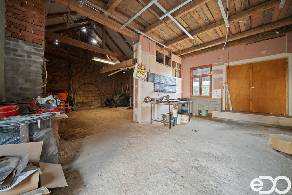 Na pozemku stojí také stodola, kterou majitel začal přetvářet na dílnu. Ideální prostor pro řemeslníky, koníčky, skladování nebo budoucí ateliér.