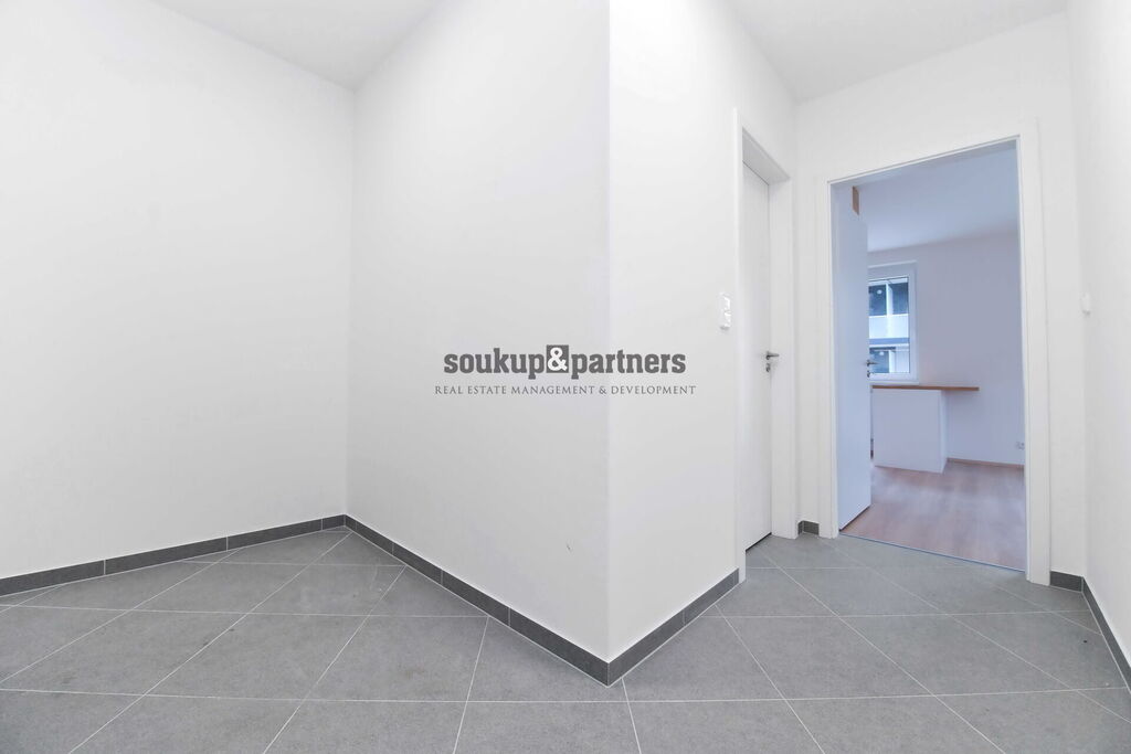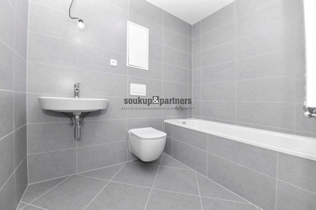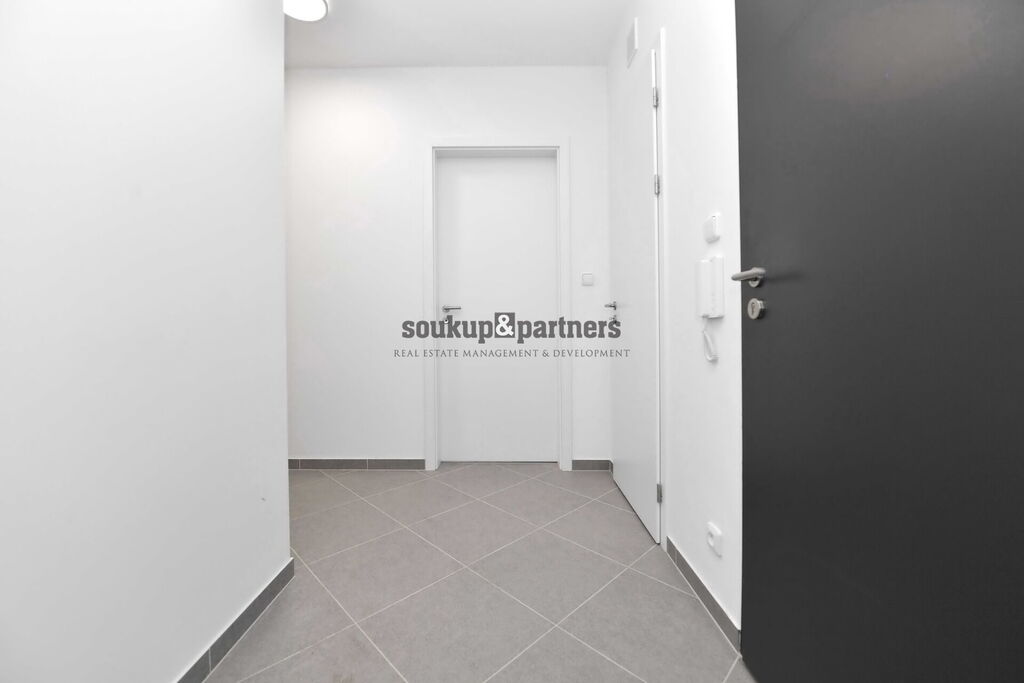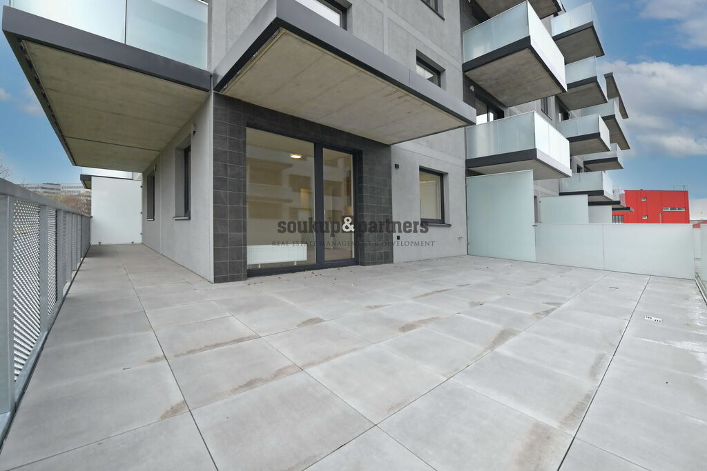 Pronájem bytu 2+kk o výměře 52,8 m² + terasa (49,8 m²) + sklep (4,8 m2) + garážové stání, který se nachází v 1. nadzemním podlaží novostavby v projektu Nad Krocínkou, Praha 9 - Prosek.