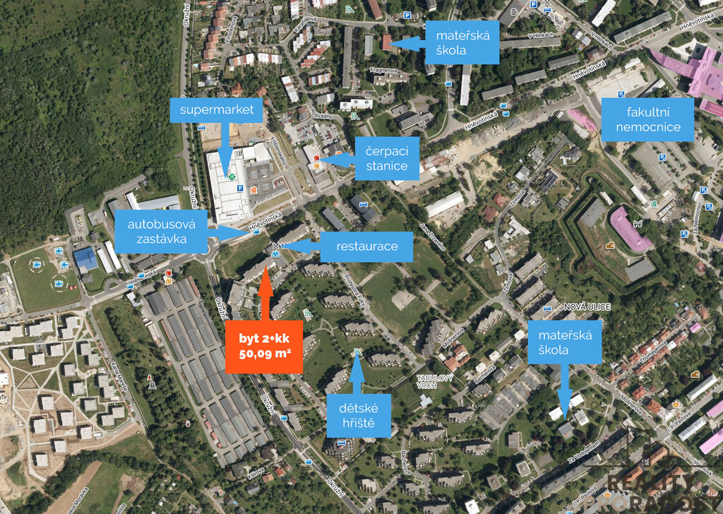 Lokalita Tabulový vrch patří mezi nejvyhledávanější a nejmodernější rezidenční části Olomouce. Jedná se o klidnou, bezpečnou lokalitu za Fakultní nemocnicí Olomouc, v těsné blízkosti supermarketu Kaufland, Pizzy Pollo a Baby Resortu (dětská skupiny od 1 roku). Poblíž je mateřská škola (Karafiátova, Mošnerova), základní škola (Stupkova). Zastávka MHD (autobus) před domem.
