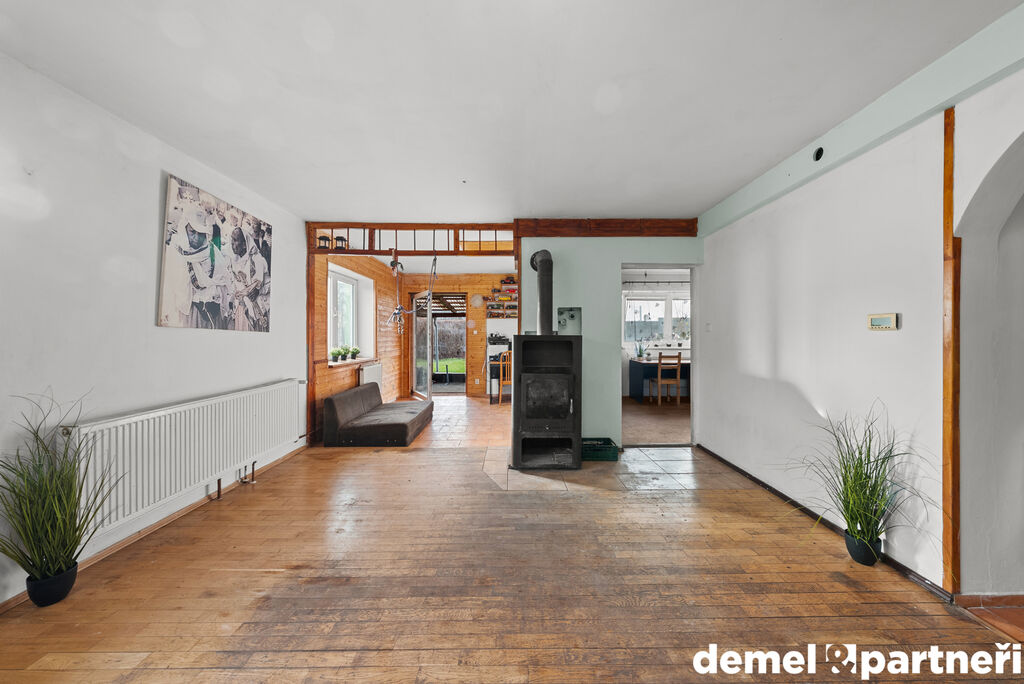Dům s aktuální dispozicí 3+1 ti nabídne 95 m², které jsou vhodné na nenáročnou rekonstrukci. Po vstupu do tohoto zděného domu najdeš koupelnu s toaletou a technickou místnost. Poté dojdeš do spojeného obývacího pokoje s kuchyňským koutem a dvou neprůchozích pokojů. Dispozičně je dům řešený velmi dobře, takže na tebe čekají úpravy typu "faceliftu" a "upgradu" technologií. Přejdeme na venky... Tam je to stejný případ, dům ocení kosmetické úpravy. Kolem domu budeš mít k farmaření nebo k odpočinku 438 m² zahrady. Ta je teď udržovaná a určená k výstavbě bazénu, nebo výsadbě ovocných stromků. Obrovským plusem je pak prostorná garáž s přilehlým prostorem, kde můžeš mít dílnu, nebo klidně domácí wellnessko.