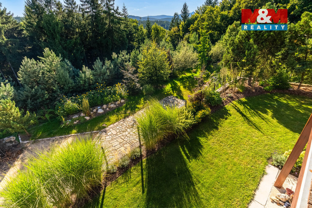 Nabízíme ke koupi výjimečný rodinný dům v alpském stylu, navržený architektem Martinem Sladkým, situovaný v klidné části Jablonce nad Nisou. Tato cihlová stavba se pyšní dvěma nadzemními a jedním podzemním podlažím, poskytující celkem 6 prostorných místností. Dům na pozemku o rozloze 750 m² nabízí užitnou plochu 300 m².Interiér je navržen s důrazem na přirozené světlo, což podtrhují celoskleněná zábradlí a prosklené podlahy. Přízemí slouží jako společenská zóna s obývacím pokojem, kuchyní, pracovnou a moderní koupelnou. Horní patro je určeno pro soukromý relax s ložnicí a dvěma pokoji s vlastními koupelnami. Suterén nabízí technické zázemí a úložné prostory. Terasa s výhledem do zeleně dotváří harmonické propojení s přírodou. Venkovní žaluzie zajišťují optimální osvětlení. K domu náleží zateplená dvojgaráž a prostor na kola a lyže. Dům je v perfektním stavu a čeká na nové majitele, kteří ocení jeho jedinečnost a kvalitu. Více informací sdělí makléř na prohlídce.