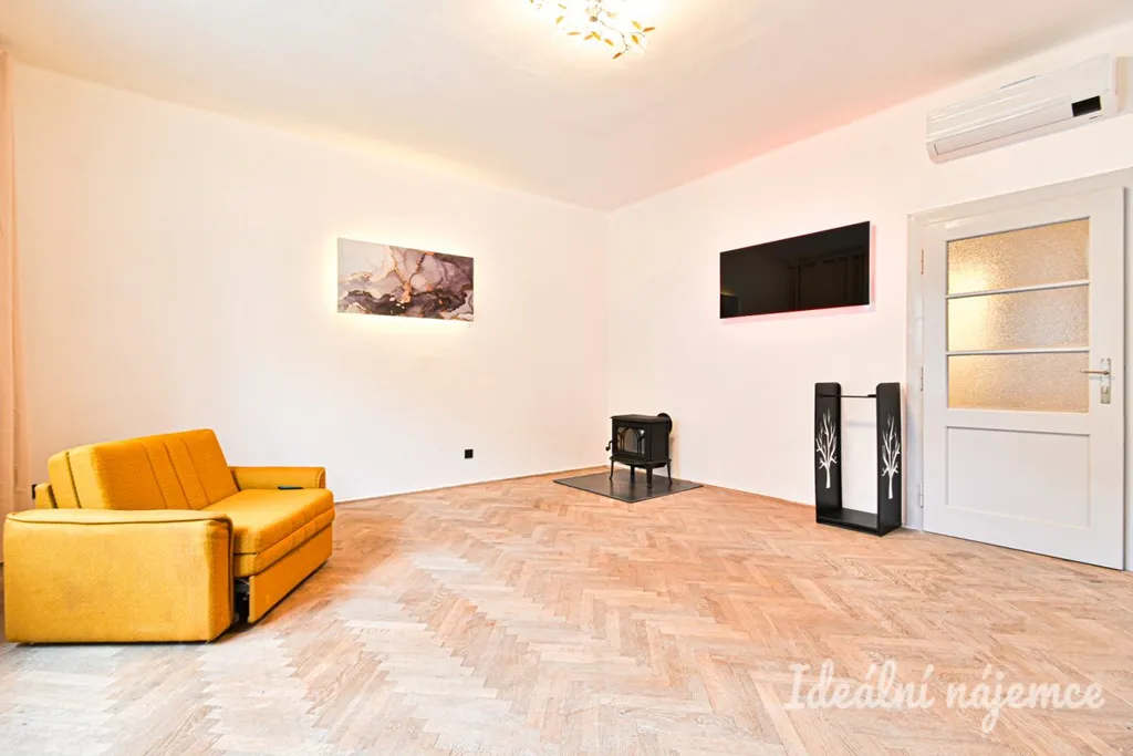 V bytě jsou původní parkety, v kuchyni PVC a v koupelně dlažba. Vytápění zajišťují infraobrazy (topení infra Klarstein možnost ovládání přes WI-FI).
