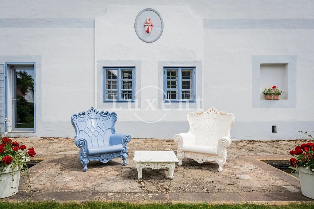 Na pomezí pohádkového snu a moderní elegance nabízíme k prodeji výjimečný renesanční zámeček situovaný nedaleko Českých Budějovic v jižních Čechách. Prodej zahrnuje historickou zámeckou budovu s pěti ložnicemi a stylově zařízenými interiéry, dva butikové apartmány v samostatné budově, venkovní vyhřívaný bazén s protiproudem, soukromý rybník obklopený parkem a vodním domkem ideálním pro letní ubytování. Součástí areálu je také zámecká stodola s kapacitou až 70 míst, která byla precizně přizpůsobena pro pořádání různorodých akcí, jako jsou oslavy, vernisáže, přednášky či koncerty. Dále zde naleznete samostatnou garáž pro čtyři vozy, francouzskou bylinkovou a květinovou zahradu s okrasnými jezírky, romantické pergolové rozárium a nádvoří zdobené ústřední uměleckou plastikou.