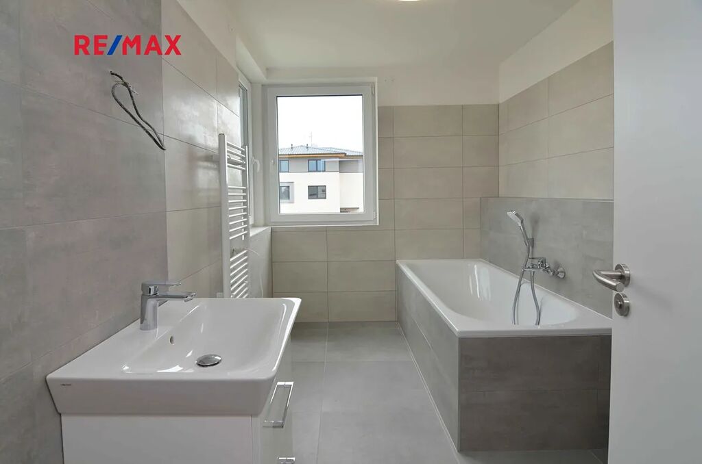 Dále zde nalezneme tři samostatné ložnice a dvě koupelny s podlahovým vytápěním. Byt bude částečně vybaven.