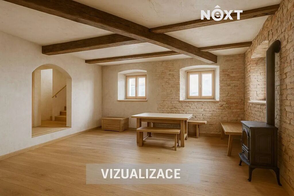 Na domě proběhla většina bouracích a přípravných prací. Dům nabízí výjimečný potenciál – lze dotvořit obytné plochy, pracovat s otevřenými krovy, vybudovat terasu nad stodolou a prostor využít pro rodinné bydlení, rekreaci či kombinaci s ateliérem/dílnou.