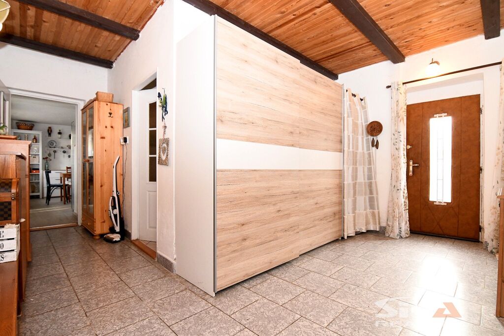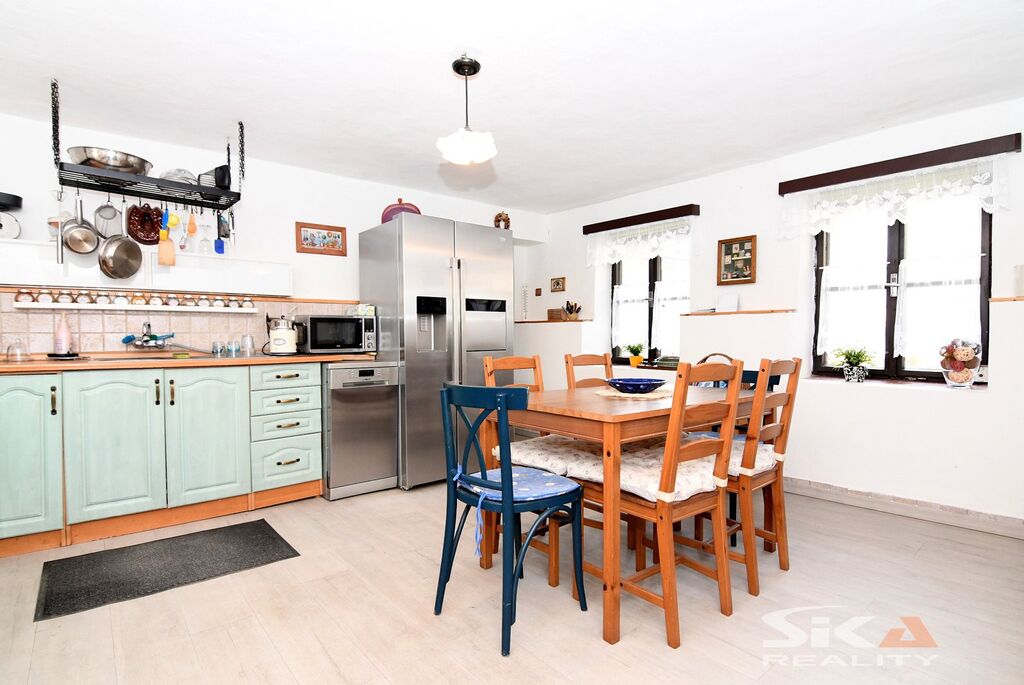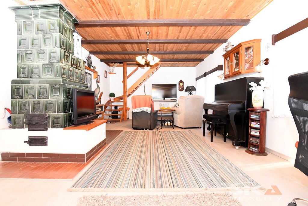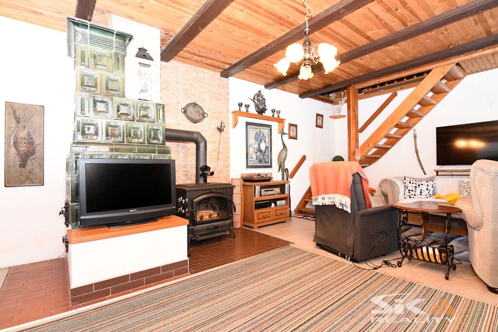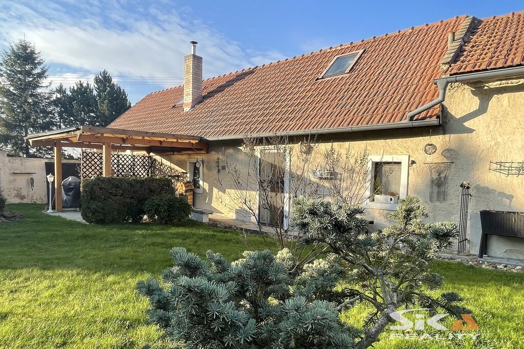 Nabízíme k prodeji původní stavbu bývalé kovárny, která byla v posledních letech využívána jako rekreační chalupa. Nemovitost se nachází v obci Vojnice u Koštic, v malebném prostředí Českého středohoří – kraje, který potěší každého milovníka klidu, přírody a nenáročné turistiky. Objekt je nepodsklepený, s jedním nadzemním podlažím a využitým podkrovím a je umístěn na pozemku o celkové výměře 655 m2. Obytná část má charakteristické otevřené průčelí, které slouží jako kryté venkovní parkování a zároveň hlavní vstup do interiéru. V přízemí se nachází vstupní chodba s přímým výstupem na zahradu, koupelna se sprchovým koutem a WC, kuchyně se vstupem do hospodářské části a obývací pokoj s dřevěným schodištěm do podkroví, které nabízí dvě útulné ložnice s okny do zahrady. Na obytnou část navazuje praktický hospodářský trakt – garáž s dílnou a skladovací místností, která je přístupná z kuchyně a zároveň z ní lze vstoupit přímo na zahradu. Objekt je vytápěn krbovými kamny v obývacím pokoji a kuchyni. Ohřev vody zajišťuje elektrický bojler. Dům je napojen na obecní vodovod, odkanalizování vede do jímky, obec plánuje vybudování kanalizace.Stavba je průběžně udržovaná a disponuje novějšími elektrickými rozvody. Za domem se rozkládá uzavřená a dobře členěná zahrada s dřevěnou pergolou pro letní posezení. Nechybí bazén, zatravněné plochy a sadové úpravy, které dávají prostoru příjemný venkovský charakter. Upozorňujeme, že obvodový půdorys průčelí evidovaný v katastru neodpovídá skutečnému provedení, vestavba dvou podkrovních místností nebyla pravděpodobně oficiálně povolena příslušnými úřady a ohradní zeď na jižní hranici zahrady neodpovídá plně skutečnému průběhu hranice sousedících pozemků, přičemž tento stav trvá již řadu let a současný majitel nemovitosti takto nabyl a po celou dobu užíval. Díky poloze nemovitosti v Českém středohoří nabízí okolí pestré možnosti pro výlety, cykloturistiku i klidné procházky krajinou. Tato nemovitost je zajímavou příležitostí pro ty, kteří hledají zázemí pro rekreaci v krásné přírodě v klidné vesničce – místo, kde se můžete na víkend odpojit od ruchu města, nadechnout se čerstvého vzduchu, užít si ticho venkova a zároveň mít po ruce dostatek prostoru pro odpočinek, rodinné setkávání i nenáročné zahradničení nebo malé domácí projekty. Doporučujeme osobní prohlídku.