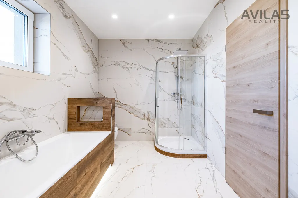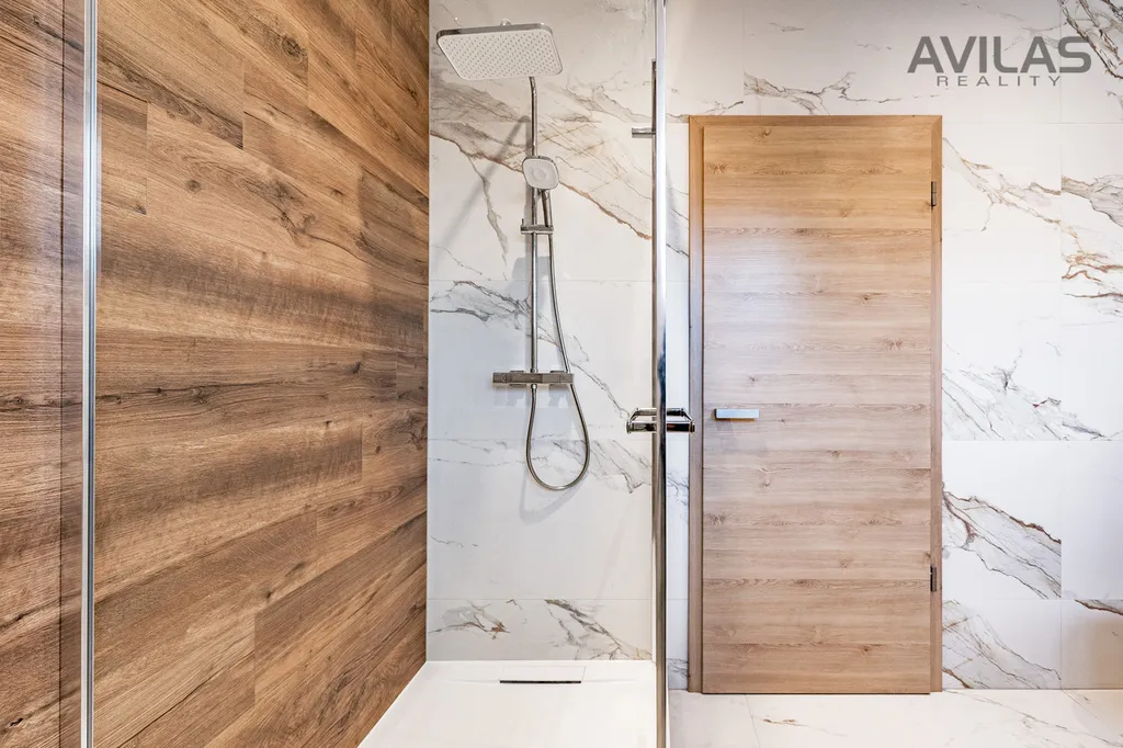 Použité materiály: zdivo cihla Porotherm 30 cm plus 17 cm zateplení, střecha zateplená 50 cm polystyrenu, okna plastová - trojsklo, vytápění podlahové - zdroj tepelné čerpadlo Panasonic, krbová vložka 9 kw, obecní kanalizace a vodovod, energetická třída B, příprava na před okenní rolety, příprava pro fotovoltaiku, zpevněné plochy okolo domu betonová dlažba 10 cm.