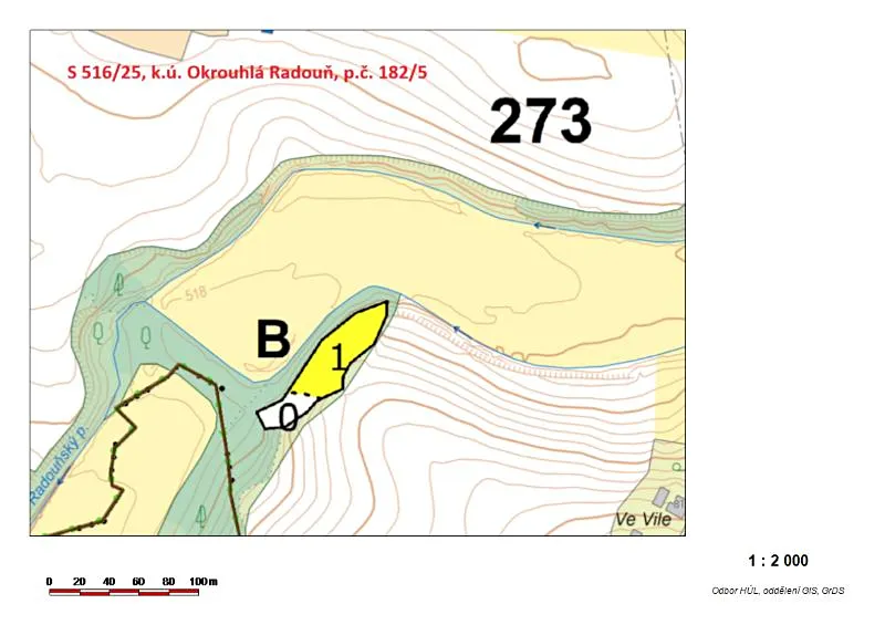 Jedná se o prodej lesního pozemku parc. č. 182/5 o výměře 2395 m2, nepravidelného tvaru, obklopeného převážně zemědělskými pozemky jiných vlastníků, zarostlý listnatými stromy a keři.