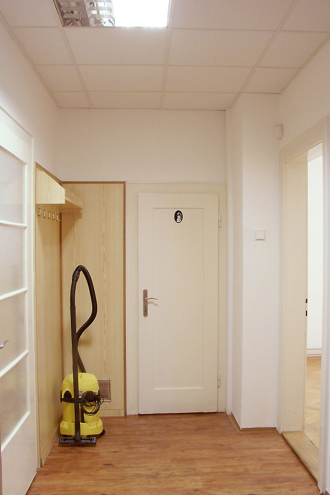 Každé patro disponuje vlastní koupelnou se sprchovým koutem a samostatným WC. Třetí nadpodlaží bez vybavení, ve 4. NP kancelářský nábytek na míru a kuchyňský kout.