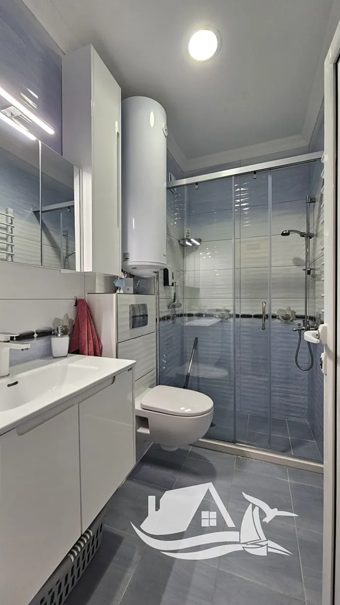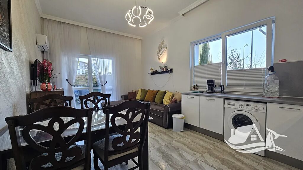 V přízemí elegantní pětipodlažní budovy se nachází útulný apartmán 2+kk o rozloze 60,1 m². Prostor působí vzdušně a klidně, s interiérem laděným do příjemných, neutrálních tónů. Architektonické řešení umožňuje pohodlné uspořádání pro jednotlivce, pár i malou rodinu.