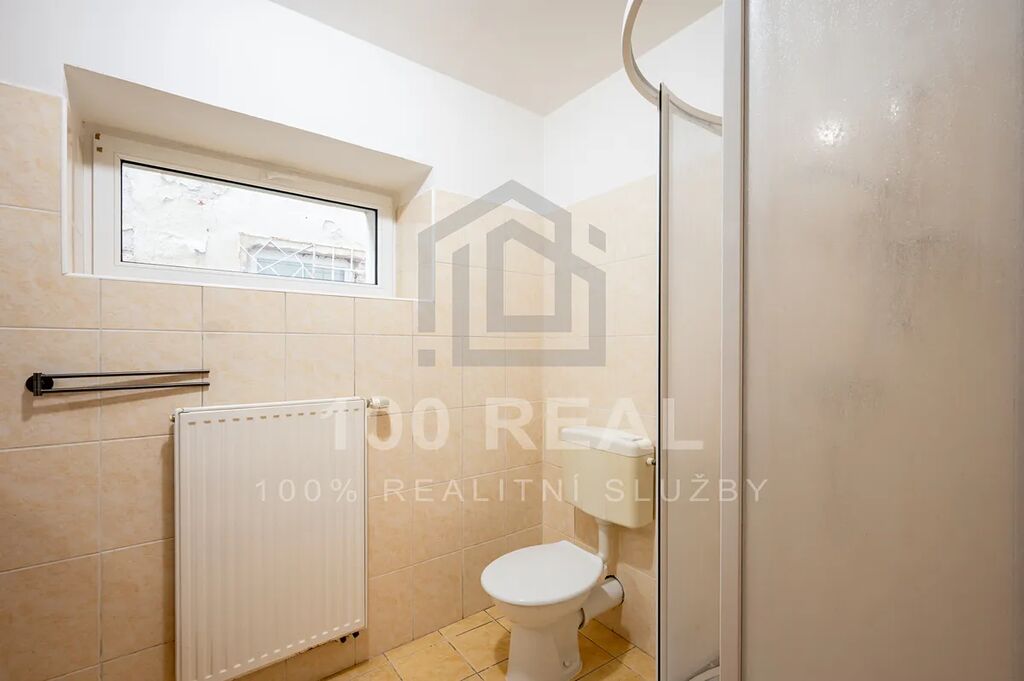 - koupelna se sprchovým koutem, umyvadlem, nástěnnou umyvadlovou skříňkou, zrcadlem, bojlerem a WC (4,6 m²)