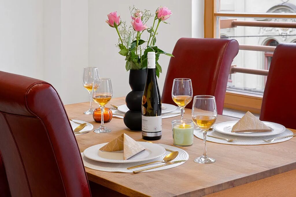 Dominantou je obývací pokoj o rozloze 50 m² s krbovými kamny, na který navazuje prostorná jídelna a kuchyň s ostrůvkem o rozloze 35m2. Byt disponuje dvěma ložnicemi, dvěma koupelnami (jedna en-suite), špajzem a prostornou chodbou, která odděluje klidovou a denní část bytu.