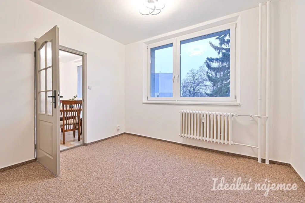 Byt disponuje balkonem. Obývací místnost a druhý pokoj jsou neprůchozí. V bytě na podlahách jsou koberce, dlažba a vinyl. Vytápění zajišťuje centrální vytápění s radiátory.