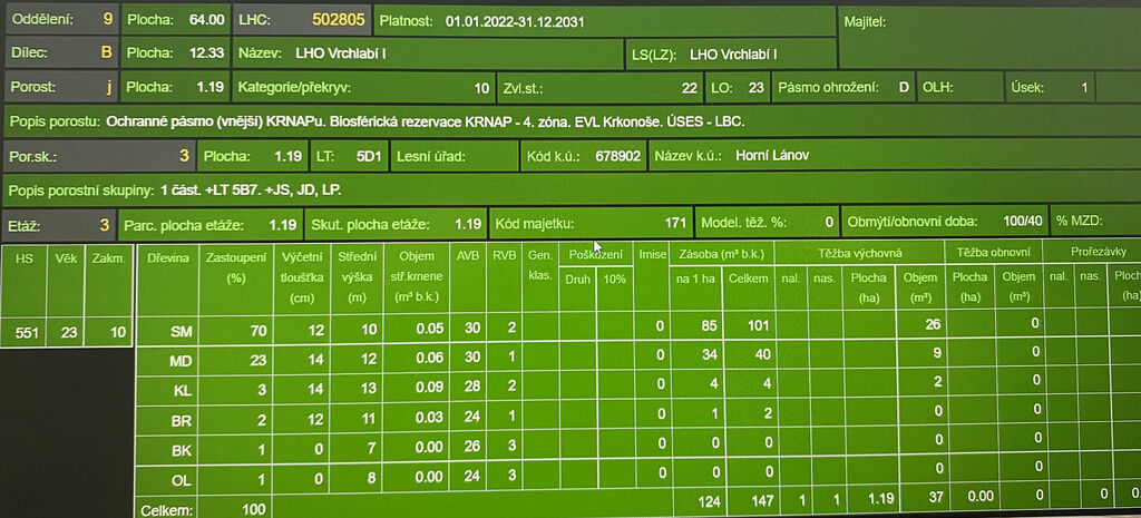 Prodej lesního pozemku v katastrálním území Horní Lánov, obec Lánov, okr. Trutnov. Jedná se o pozemek p.č. 3066 o výměře 11.269 m². Pozemek je situován na rovině až mírně svažitém terénu s přístupem po katastrované cestě. Přístup je možný z přední i zadní strany pozemku. Na ploše pozemku se nachází lesní porost smrku, modřínu, javoru, břízy, olše a buku ve věku 26 let. Lesní porost je udržovaný a zdravý. Celková zásoba dřeva činí dle platných LHO 147 m3 a je zde povolena výchovná těžba v objemu 37 m3. Pozemek je vhodný k umístění účelového zařízení sloužícímu lesu a zvěři ( chatka, krmelec atd. ). 50 metrů od pozemku protéká potok. Foto je aktuální. Informace na tel. nebo e-mailu.