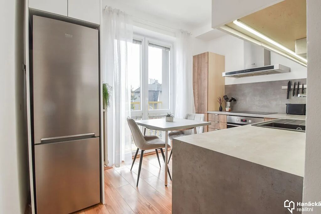 Součástí bytu je balkon orientovaný do klidného dvora, který nabízí příjemné soukromí. Interiér prošel rekonstrukcí a působí moderním, čistým a velmi dobře udržovaným dojmem. K dispozici je kompletně vybavená kuchyň se všemi spotřebiči a v bytě zůstává také pračka se sušičkou. Výhodou jsou i vestavěné šatní skříně, které poskytují dostatek úložného prostoru.