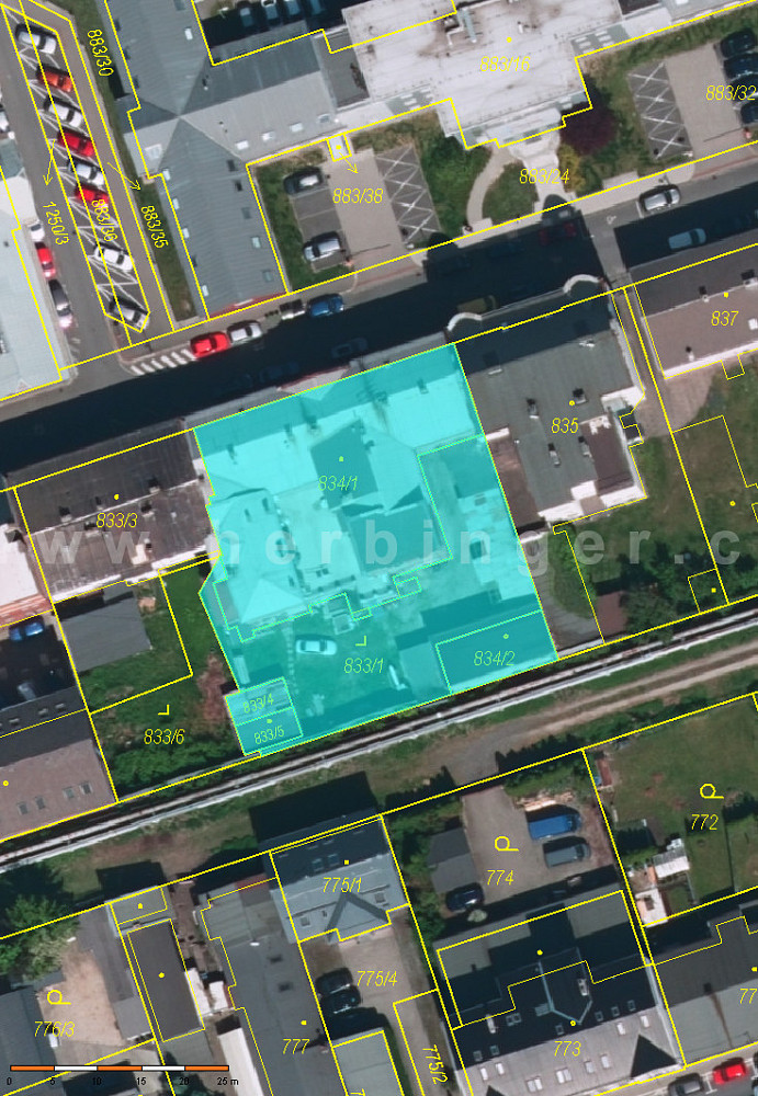 + Šířka celého objektu 31 m, pozemek o celkové výměře 1 319 m²