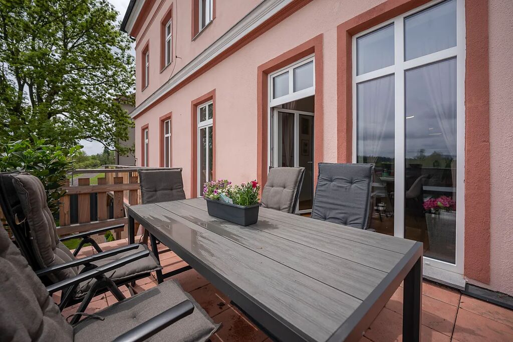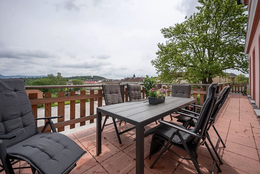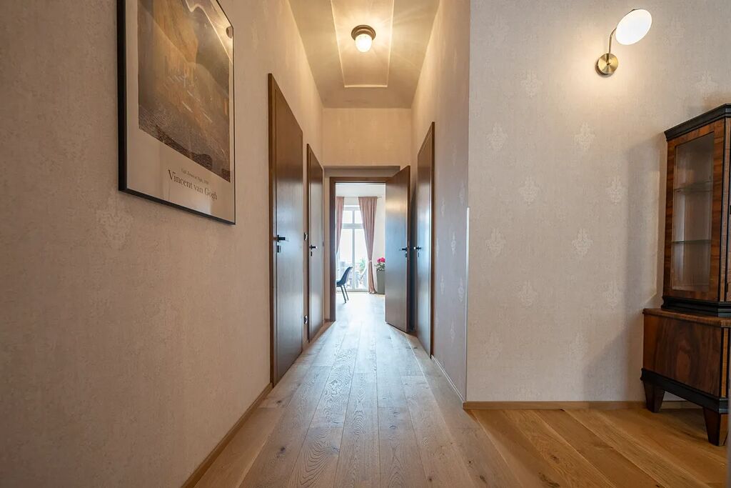 Majitel vybudoval apartmán citlivou rekonstrukcí historické vily. Apartmán nabízí prostornou obytnou kuchyň, tři velké pokoje, koupelnu s vanou i sprchovým koutem, samostatnou toaletu, šatnu a technickou místnost s pračkou a sušičkou. Opravdu krásné dřevěné podlahy, vysoké stropy s vysokými nadstandardními obložkami a dveřmi, stylový historický nábytek a svítidla vytvářejí zde jedinečnou atmosféru. Na zdech jsou moderní vliesové tapety. Prostě to musíte vidět. Ještě jako bonus je zde sauna, která je místem pro relax po dni stráveném v horách. Pro větší komfort jsou zde dva bojlery, které zajišťují dostatek teplé vody a elektro kotel s dálkovým ovládáním udržuje komfort v každém ročním období. Apartmán je plně zařízený a připravený k okamžitému užívání. K nemovitosti patří dvě parkovací stání pro automobil s přípojkou na elektromobil, společná zahrada, kde si užijete klid, a venkovní komora na lyže, kola nebo další vybavení, což je ideální pro aktivní turisty.