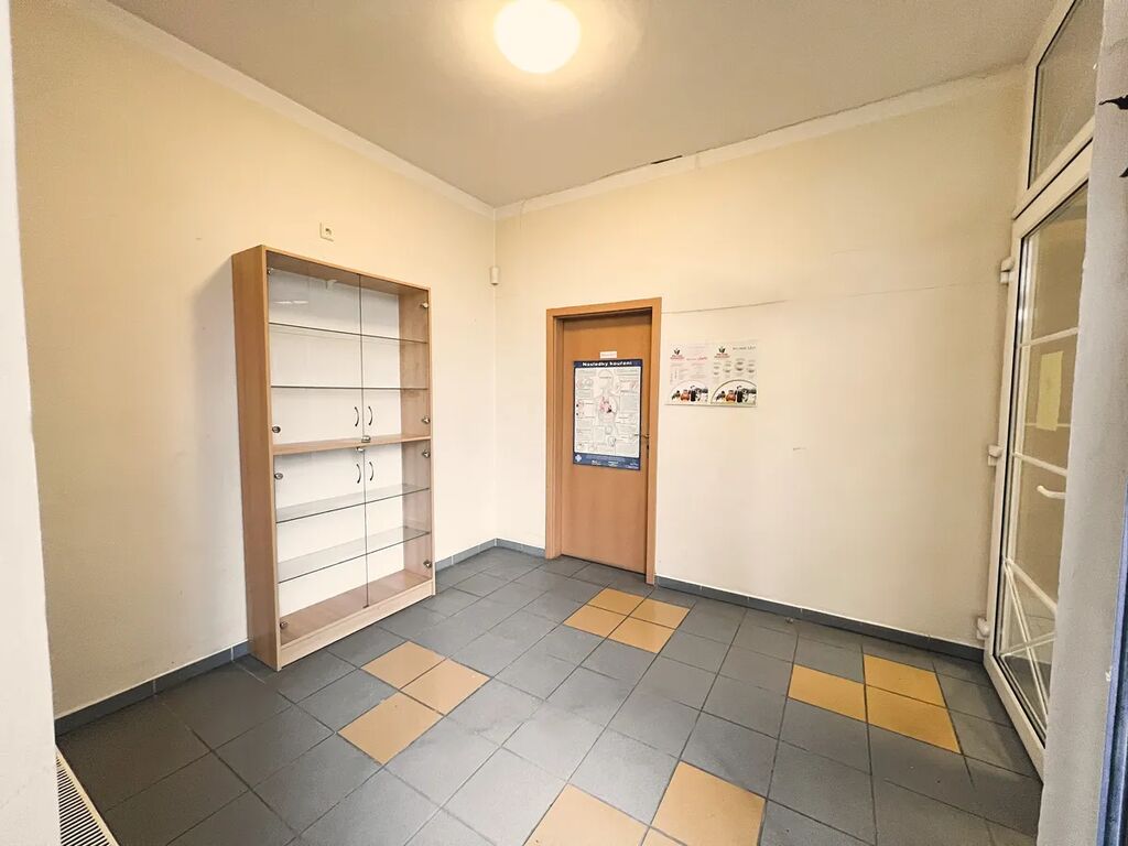 Nabízíme pronájem obchodních prostor v budově Proactiv Fitness vedle zdravotního střediska. Podlahová plocha nabízené časti je 160m². Prostor sloužil jako lékárna s laboratoří a zázemím. Prostor je možno využít jako obchodní plochu, skladovací plochu, e-shop apod. Do vstupu do prostoru je zádveří, které je velké 9.01 m², dále kancelář o velikosti 10,57m². Velká obchodní plocha o velikosti 57,98m². Dva skladovací prostory o velikosti 16,67m² a 11,94m². Kuchyňka 11,81m². Velký prostor s dvěma WC o velikosti 7,8m². Hlavní kancelář 10.57m². Dále šatna se sprchou o velikosti 14,5m² a prostorná chodba která je velká 12,69m². Za budovou je soukromé parkoviště a před budovou se nachází obrovské veřejné parkoviště. Prostory jsou vybavené jako lékárna, po domluvě je možno prostory upravit, vyklidit.