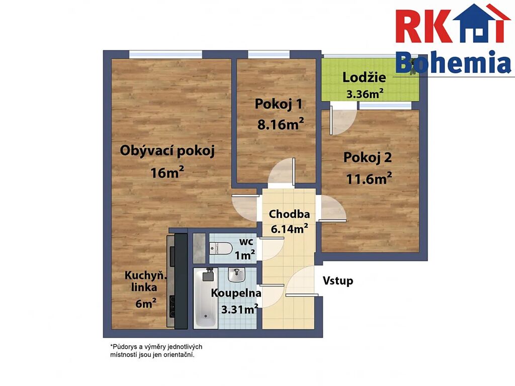 Celková plocha bytu činí 60,9 m2, z toho: