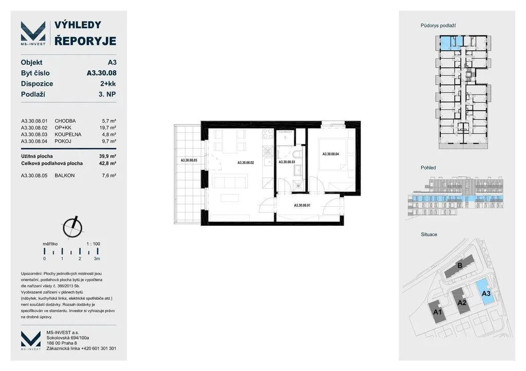 Nabízíme k prodeji zcela nový byt 2+kk s balkonem v moderním, energeticky úsporném projektu Výhledy Řeporyje. Byt s jihozápadní orientací je ideální jako vlastní startovací bydlení nebo jako investiční příležitost s vysokým potenciálem zhodnocení.