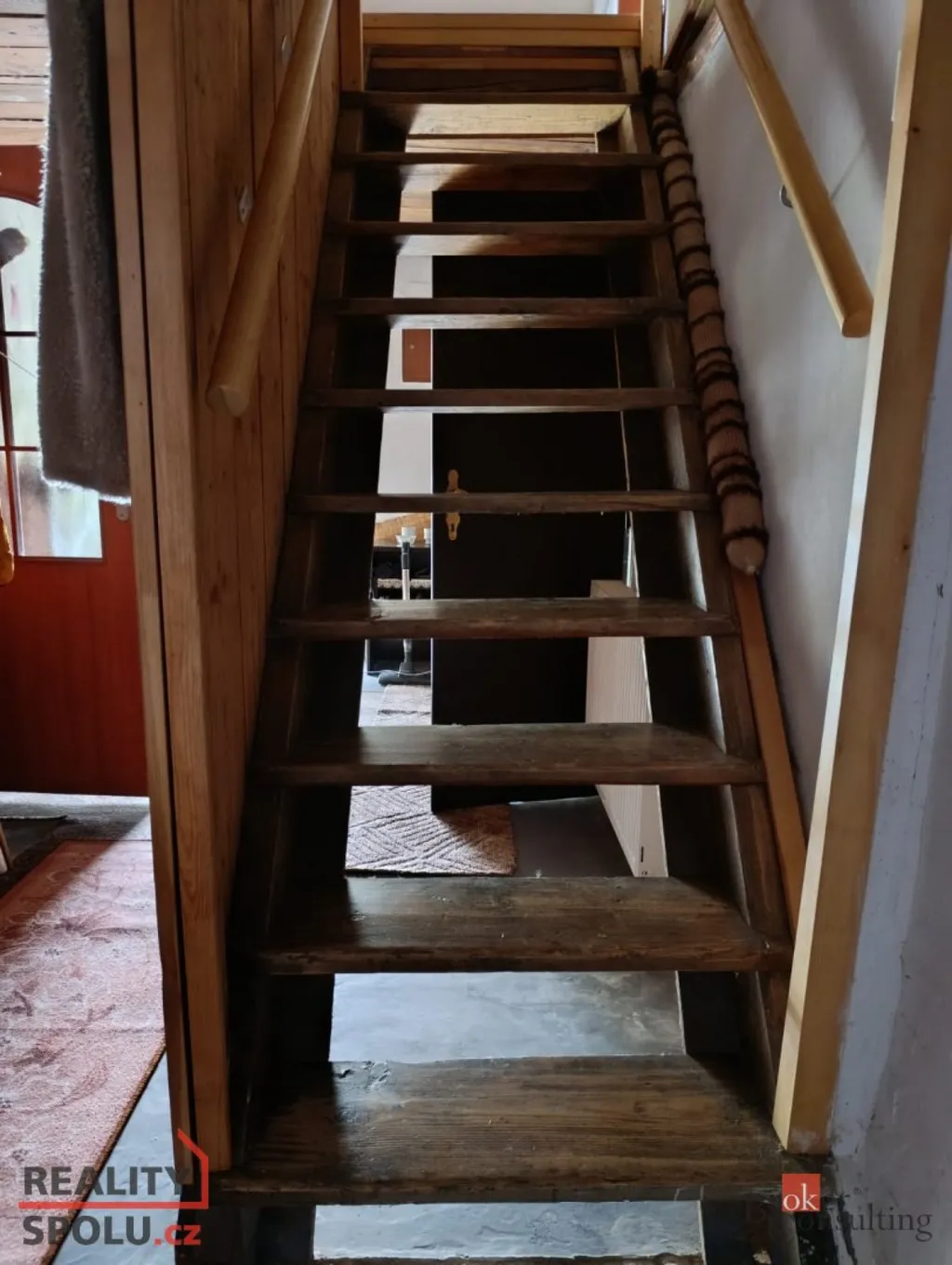 • V přízemí najdete útulný pokoj a obývací část propojenou s kuchyní a jídelním koutem.