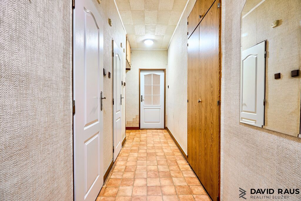 Vstupní chodba (9,53 m²) propojuje všechny hlavní místnosti bytu. Naproti vstupu je ložnice (16,97 m²), po straně chodby se nachází samostatné WC (0,95 m²), koupelna se sprchovým koutem (2,87 m²) a vestavěný úložný prostor vhodný pro ukládání domácích potřeb. Z chodby je dále vstup do prostorné kuchyně (10,06 ) s jídelním stolem a spíží (0,45 m²) a také do obývacího pokoje (18,76 m²), ze kterého je přímý vstup na balkon (3,96 m²).