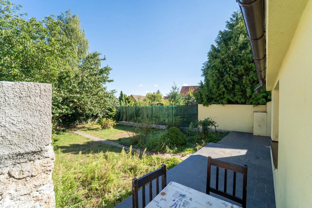 Za domem najdete velkou terasou se vstupem na zahradu 123m2, ideální pro rodinné posezení i odpočinek.