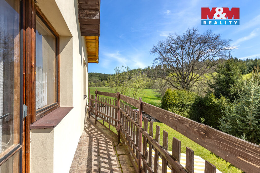 Tam kde se srnky pasou za plotem, tam kde řeka šumí, tam stojí patrový dům se zahradou, který je k mání. Zděná stavba, částečně z žuly stavěná, s dispozicí 5+1 s podlahovou plochou 95 m2, má jižní terasu a v patře balkón s výhledem do údolí, dále sklep, kůlnu, dřevník, a přístřešek na parkování. Z udržované zahrady se zadními vrátky dostanete přímo k říčce Smutná, což rybáři ocení. V roce 2014 proběhla rozsáhlá rekonstrukce a přístavba. Dům je kompletně zateplený, má plechovou střechu, vytápí ho krbová kamna, vodu z vrtané studny ohřívá bojler a odpad je sveden do jímky. Nemovitost leží na konci obce Srlín na pomezí Píseckého a Táborského okresu. Občanská vybavenost je v řádu kilometrů v okolních obcích. Pokud nehledáte městský ruch, ale krásy přírody a klid, pak je tato nemovitost pro Vás. Neváhejte a volejte si o termín prohlídky. Finance s Vámi probere naše specialistka. Při rychlém jednání možnost jednání o ceně.