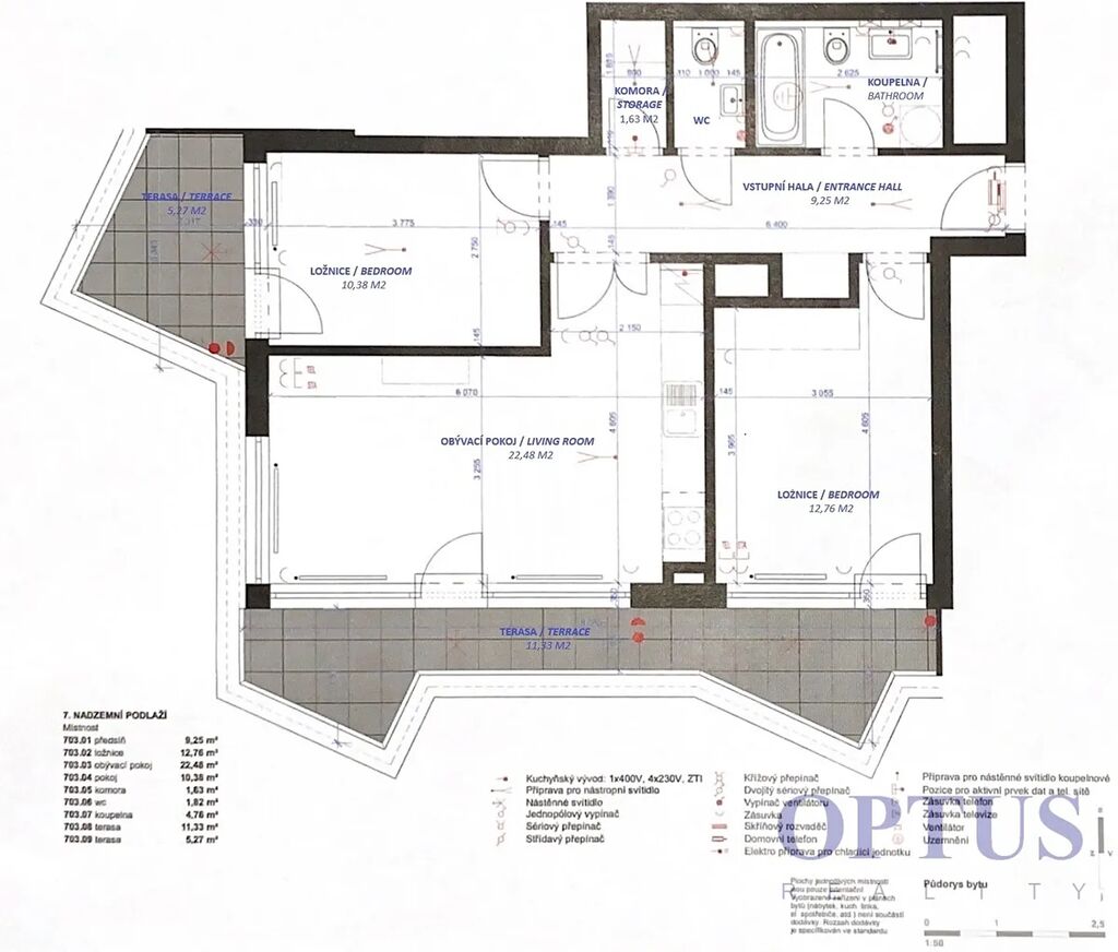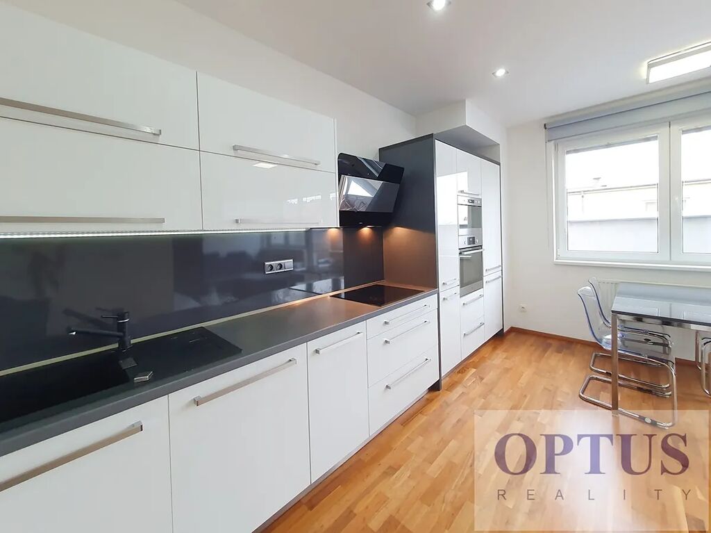 Další vybavení bytu: nábytek dle fotografií (postele v ložnicích mají rozměr 180x200 cm a 120x200 cm), kuchyňská linka včetně vestavěných spotřebičů (varná deska, el. trouba, lednice s mrazákem a myčka), dále je v bytě pračka se sušičkou, trezor, vnitřní žaluzie a rolety na všech oknech, příprava pro vysokorychlostní internet (až 1 Gb/s), dřevěné plovoucí podlahy a dlažba, centrální vytápění a podlahové vytápění v koupelně.