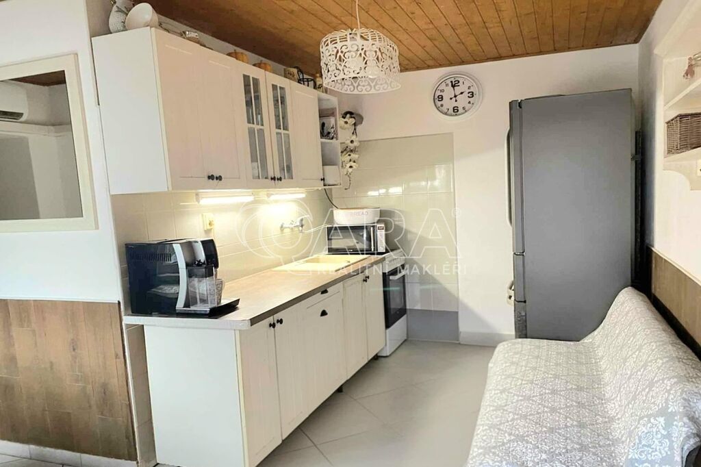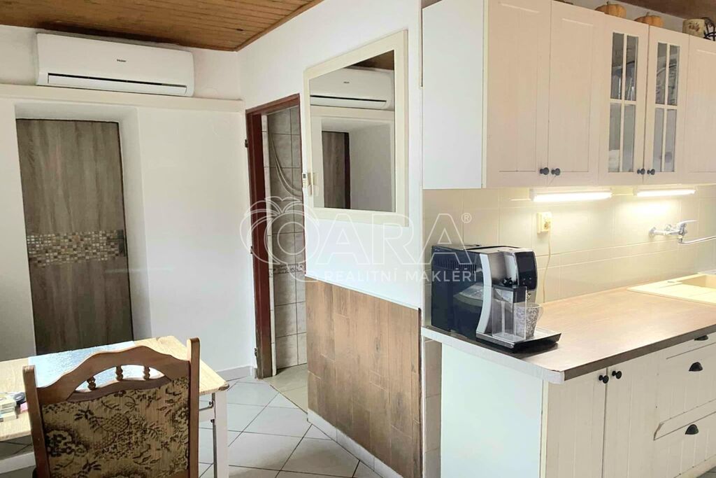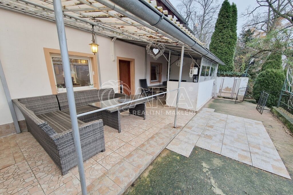 * Přízemí: kuchyně, pokoj, koupelna a další místnost sloužící spíše jako sklep; vstup na prostornou terasu a částečně zasklenou verandu o velikosti 16 m², ideální pro relax a rodinné posezení.