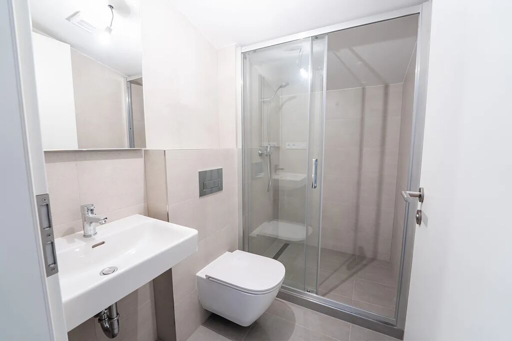 Podlahy pokryté kvalitním vinylem a dlažbou, okna s trojskly pro skvělou tepelnou a zvukovou izolaci.